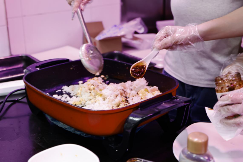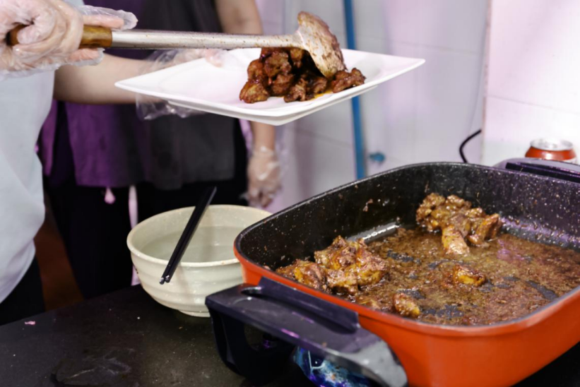 本次活动采取团队烹饪比赛的形式,同学们四人为一组,有序进入后厨备菜,现场气氛热烈。各小组分工明确,洗菜切菜、烹饪调味、摆盘装饰等环节有条不紊地进行。大家各显神通,在菜品的色、香、味上碰撞灵感,让这场团队烹饪比赛充满惊喜与活力。