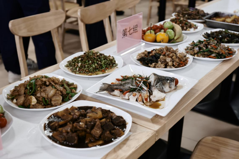 菜品制作完毕后,主持人姚诗欣宣布本场比赛的评比环节正式开始。各位参赛选手们依次介绍着各自精心烹制的菜品,从选材、烹饪技巧到创意构思,每一个细节都被娓娓道来。随着介绍的深入,评委们开始品尝菜品,并对每位选手的菜品制作过程进行询问,现场气氛热烈非凡。