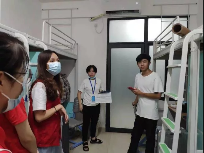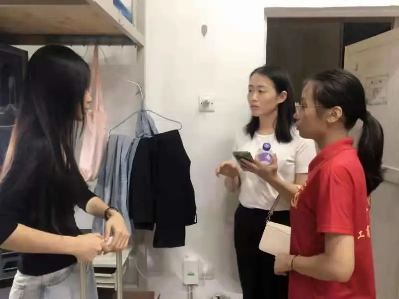 辅导员来到新生们入住的寝室,亲切地与新生进行交谈,询问他们的家乡,了解新生的家中情况,希望新生们尽快适应大学生活,尽快融入宿舍环境、融入大学生活,团结同学,处理好人际关系,强调安全注意事项等。