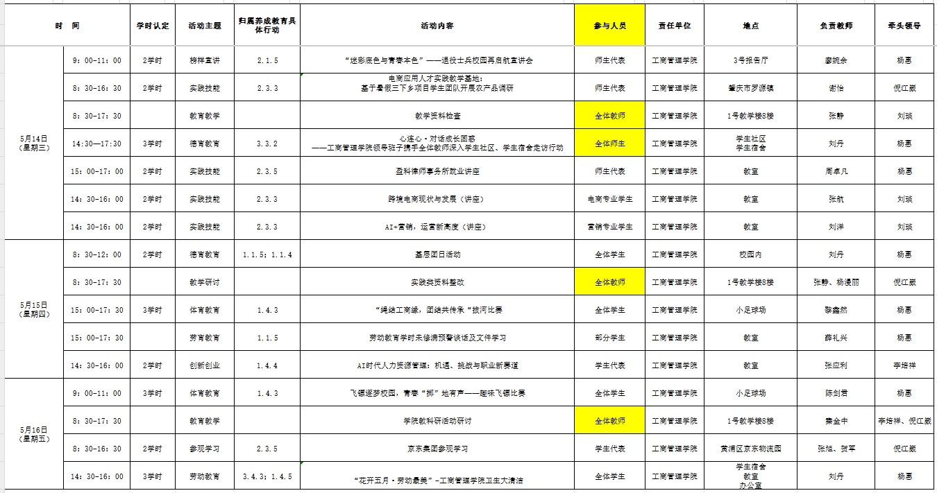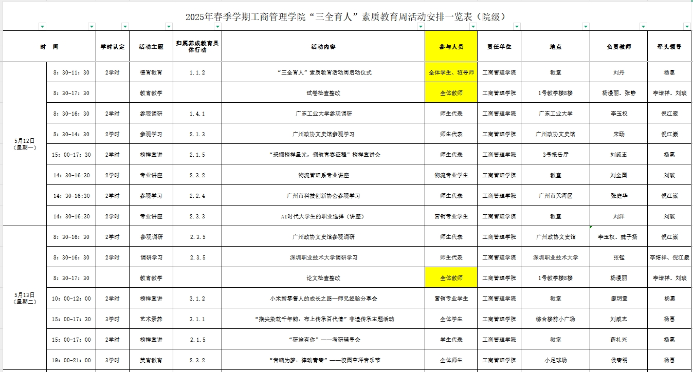 威廉希尔williamhill中文2025年春季学期“三全育人”素质教育周工作周程表