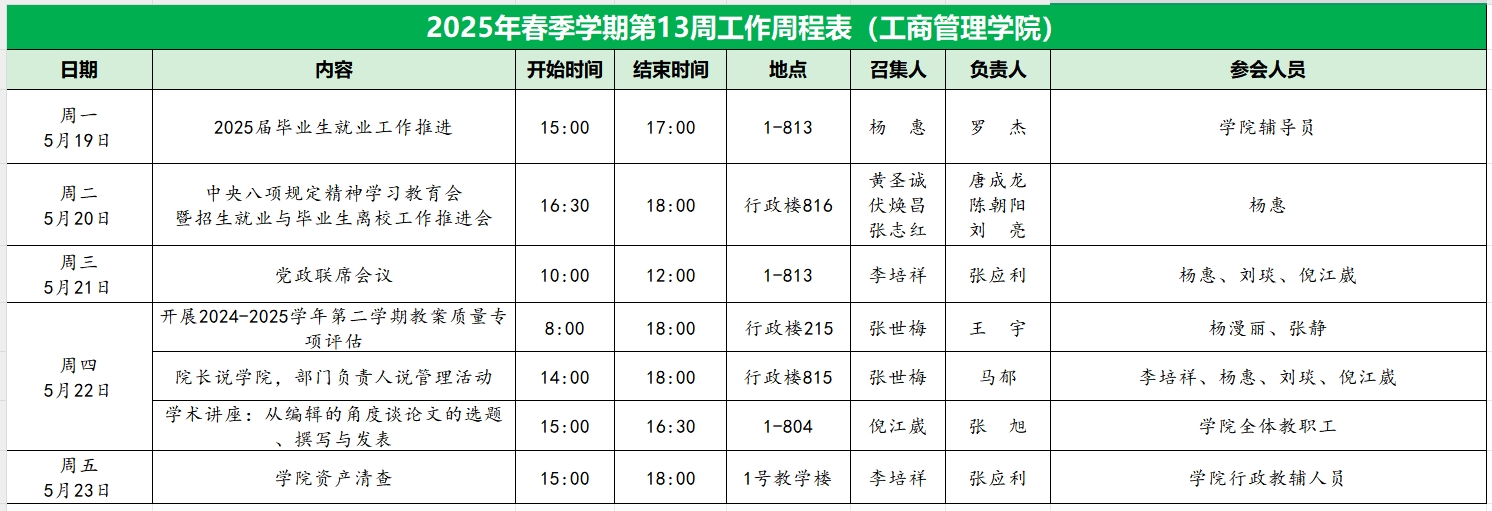 威廉希尔williamhill中文2025年春季学期第13周工作周程表