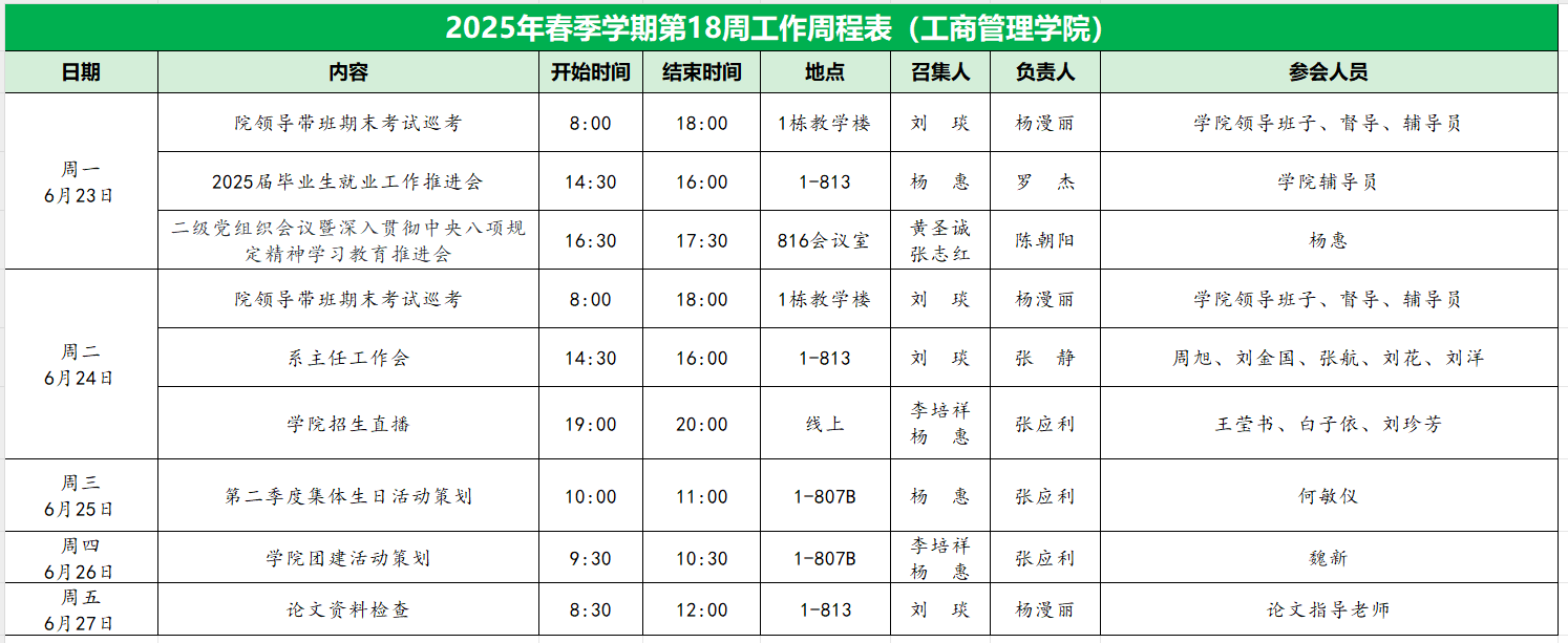 威廉希尔williamhill中文2025年春季学期第18周工作周程表
