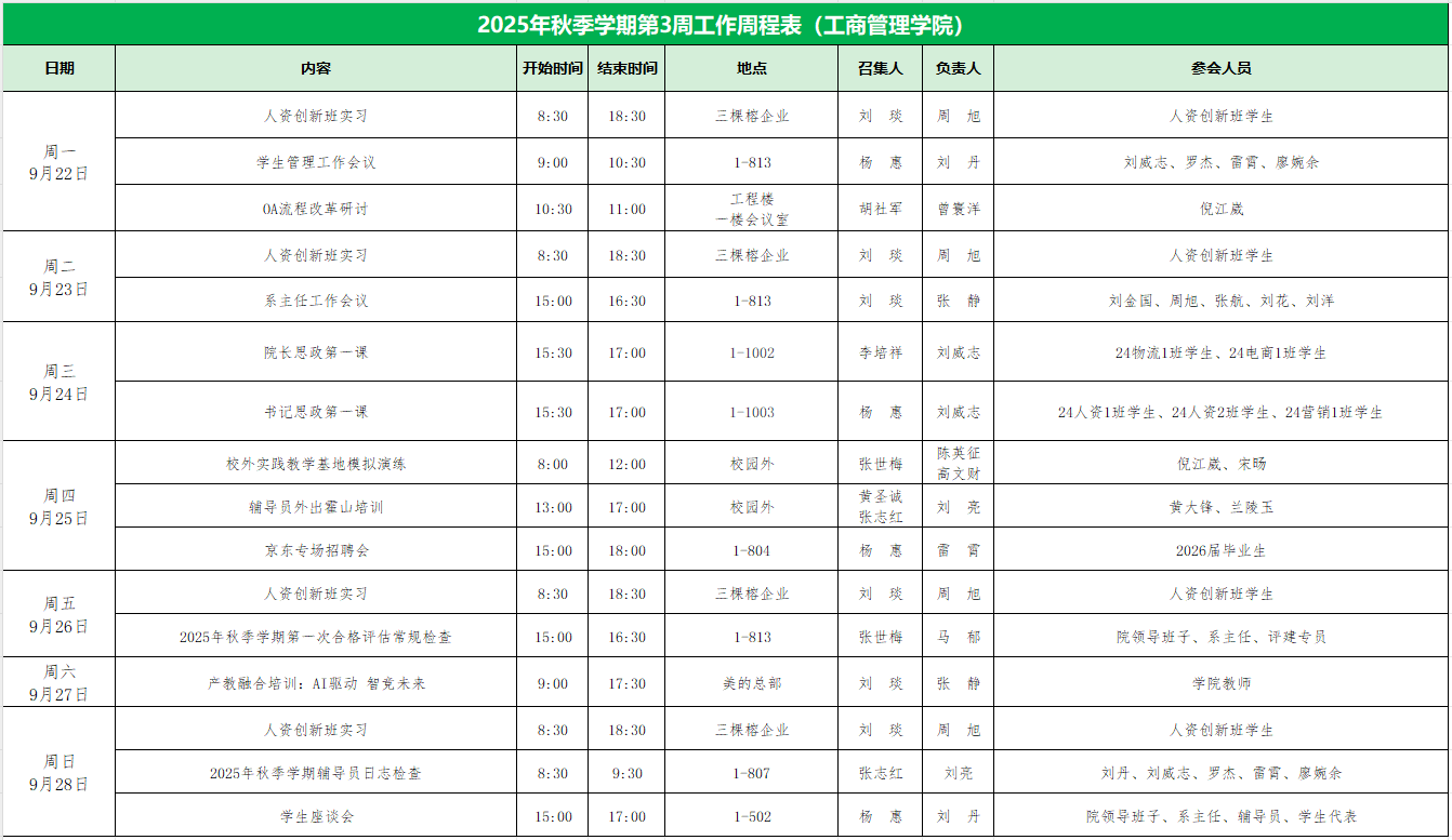 威廉希尔williamhill中文2025年秋季学期第3周工作周程表