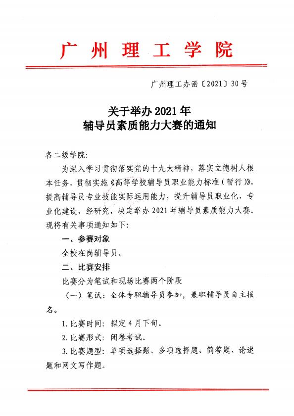 关于举办2021年辅导员素质能力大赛的通知