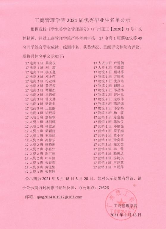 威廉希尔williamhill中文2021届优秀毕业生名单公示