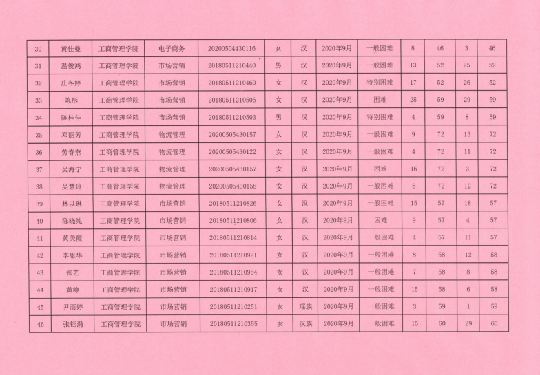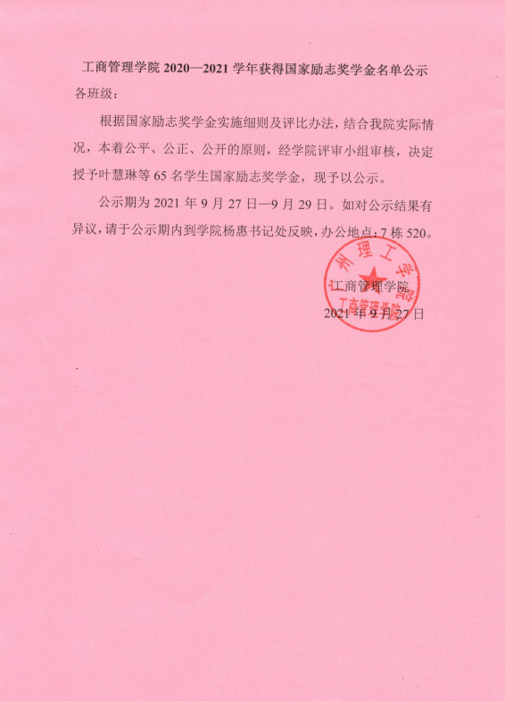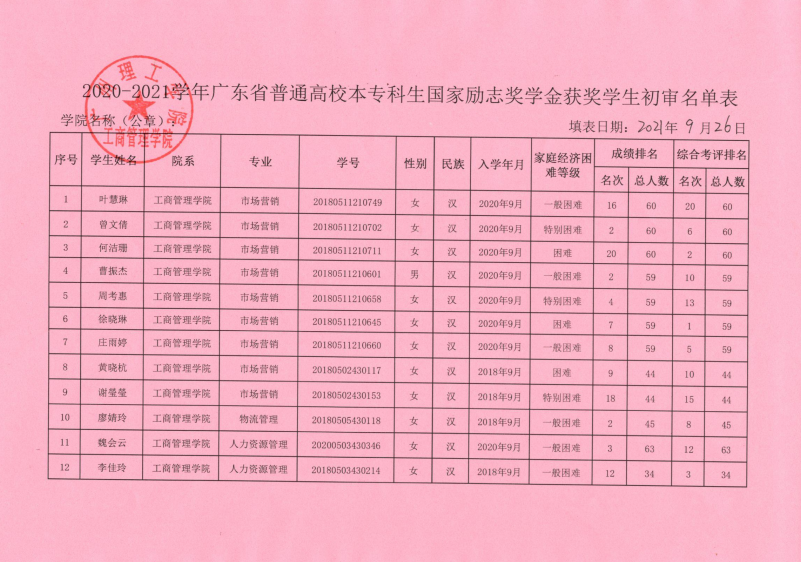 威廉希尔williamhill中文2020-2021学年获得国家励志奖学金名单公示