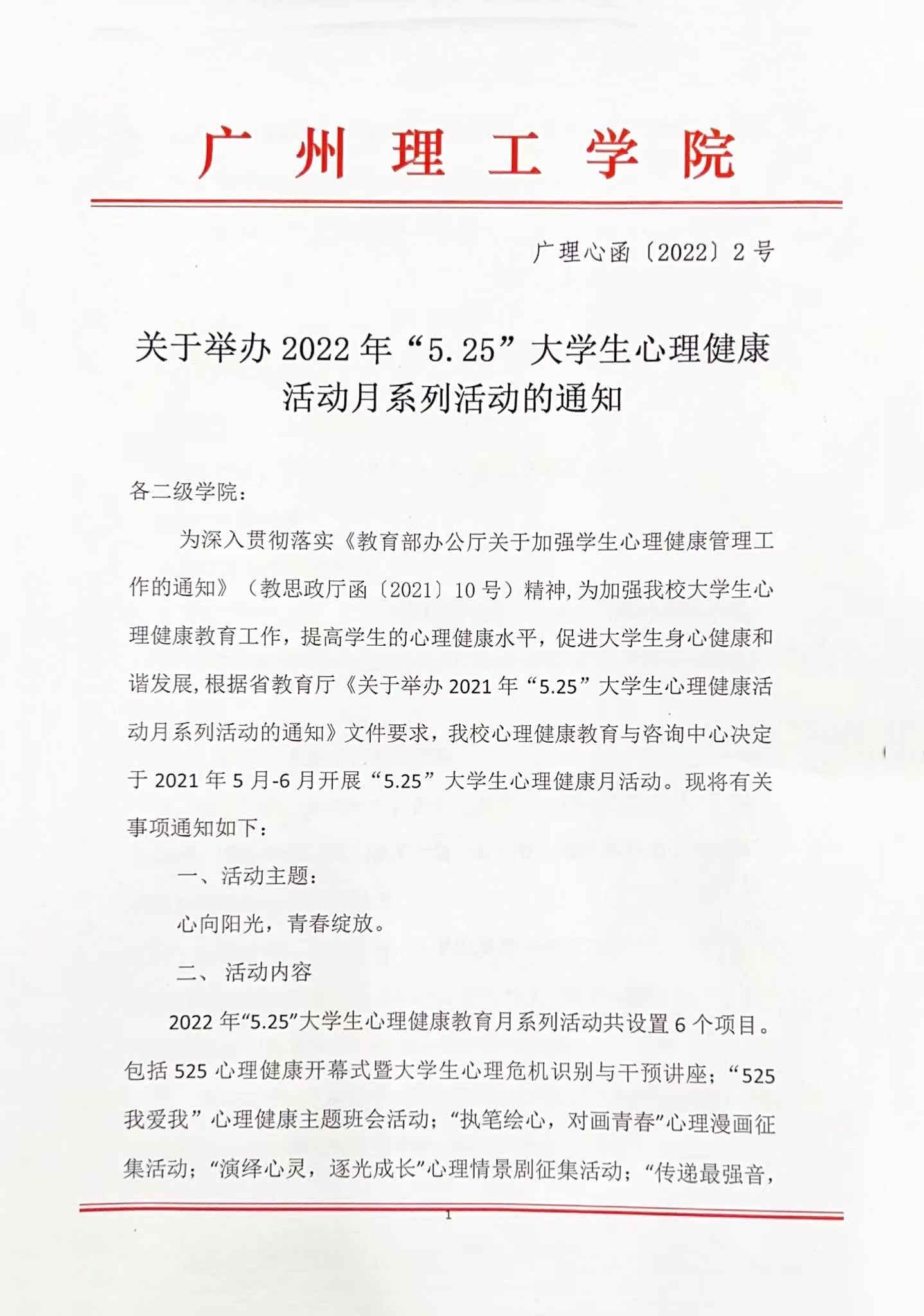 关于举办2022年“5.25”大学生心理健康活动月系列活动的通知