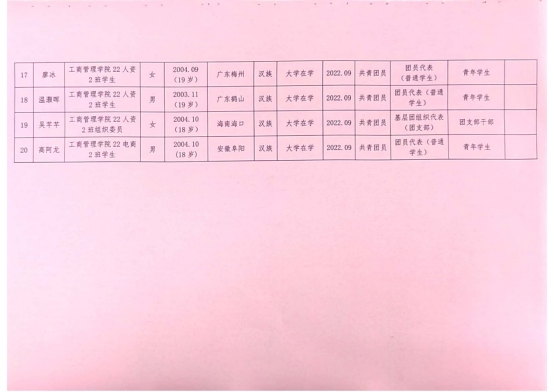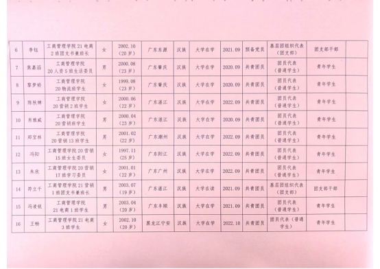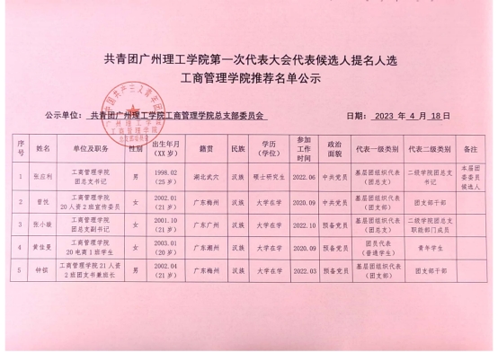(陈逸杰)为落实《关于做好共青团威廉希尔williamhill中文第一次代表大会代表推荐选举工作的通知》,切实做好共青团威廉希尔williamhill中文第一次代表大会代表推荐选举工作,经层层推选、充分协商、组织考察后,现对候选人提名人选予以公示,公示名单如下: