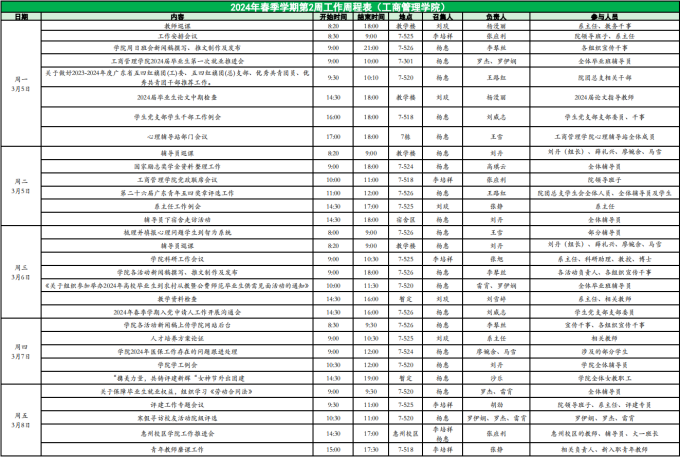 2024年春季学期第2周工作周程表(威廉希尔williamhill中文)