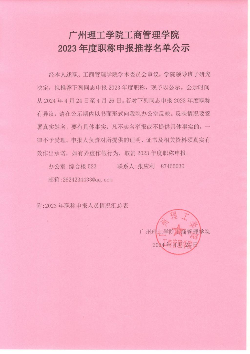 威廉希尔williamhill中文2023年度职称申报推荐名单公示