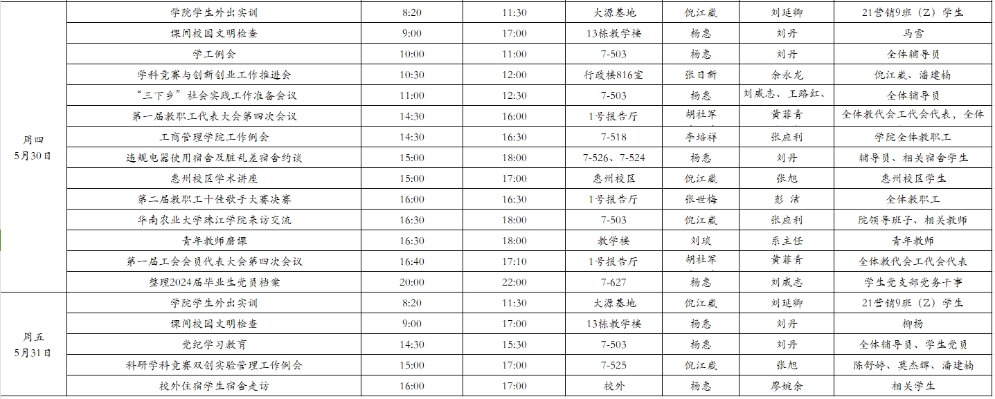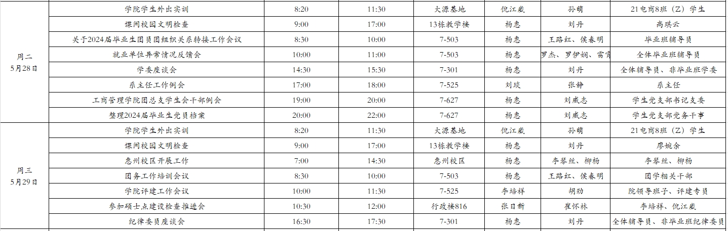 威廉希尔williamhill中文2024年春季学期第14周工作周程表
