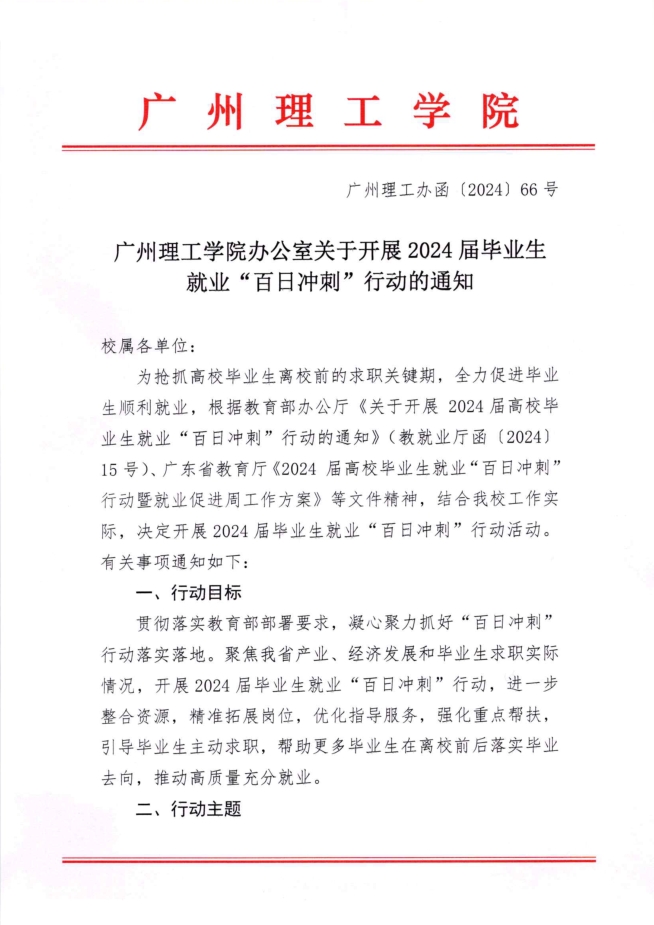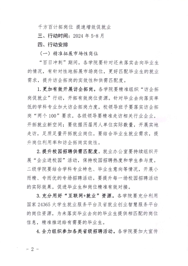 关于开展2024届毕业生就业“百日冲刺”行动的通知