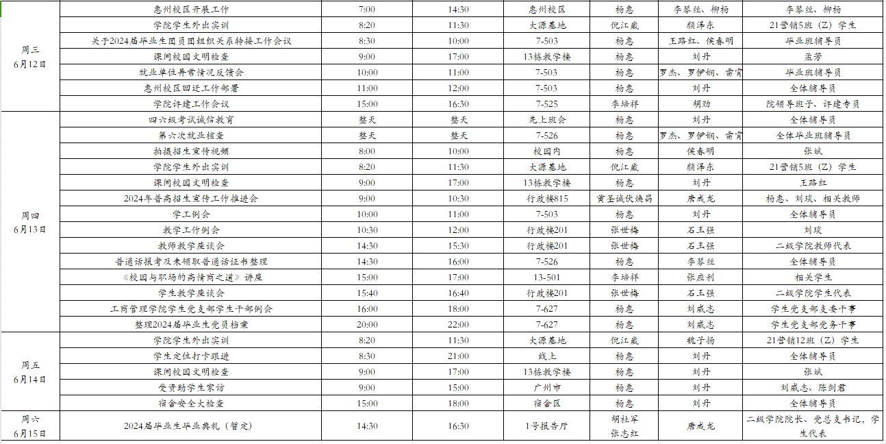 威廉希尔williamhill中文2024年春季学期第16周工作周程表