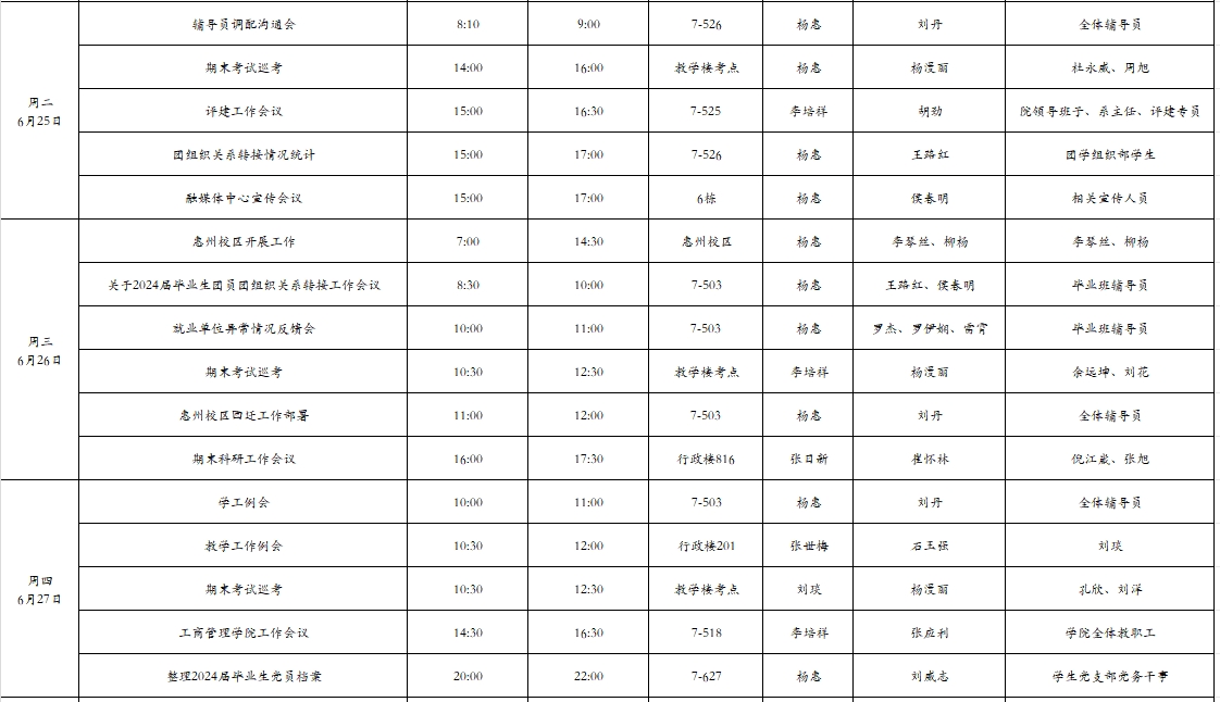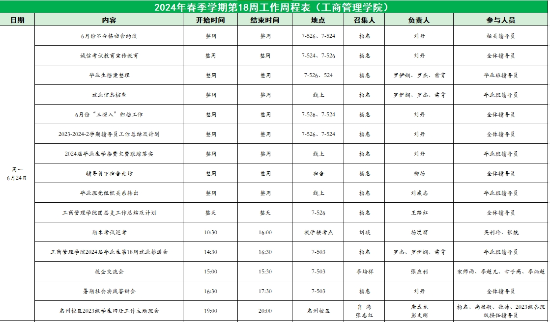 威廉希尔williamhill中文2024年春季学期第18周工作周程表