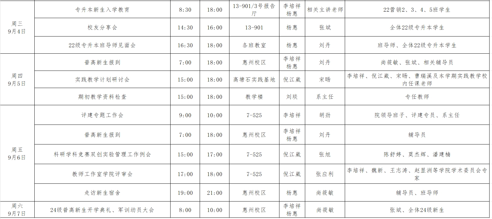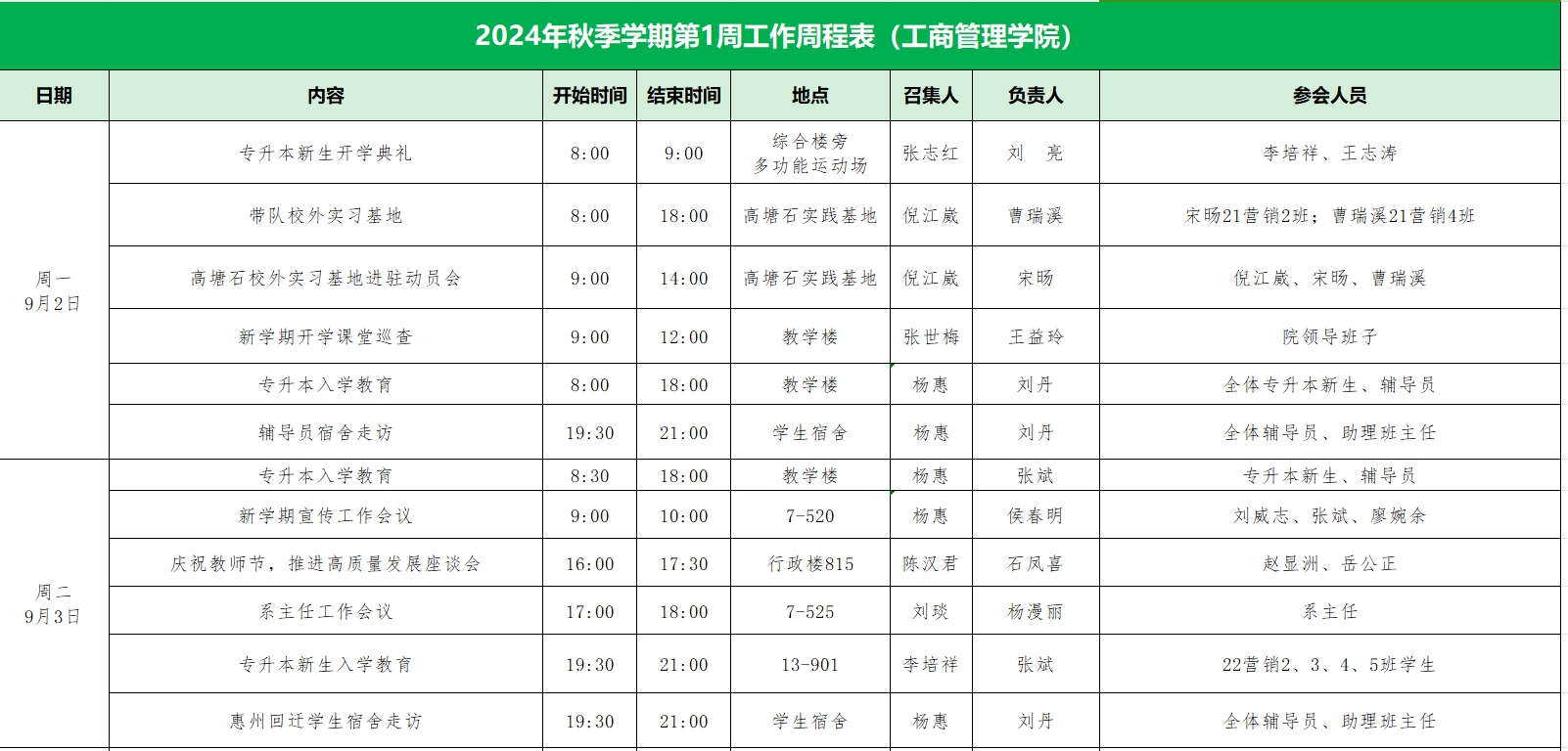 威廉希尔williamhill中文2024年秋季学期第1周工作周程表