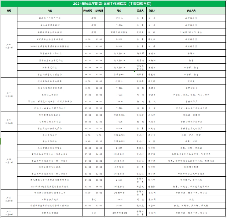 威廉希尔williamhill中文2024年秋季学期第10周工作周程表