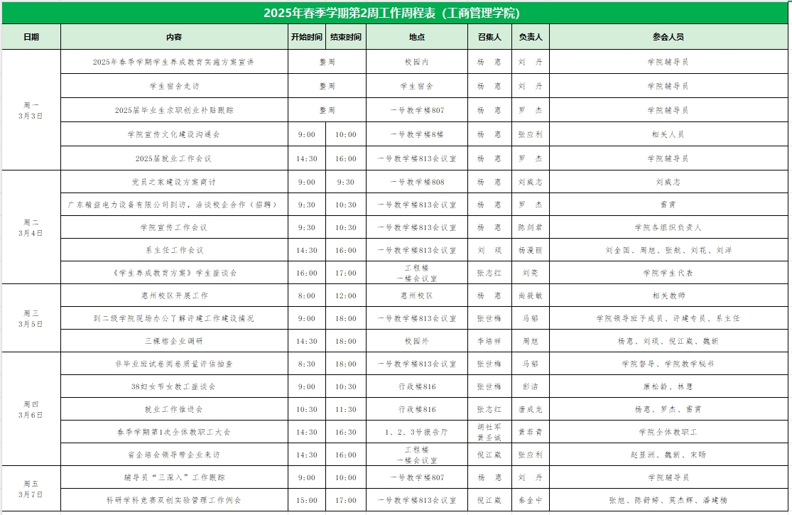 威廉希尔williamhill中文2025年春季学期第2周工作周程表