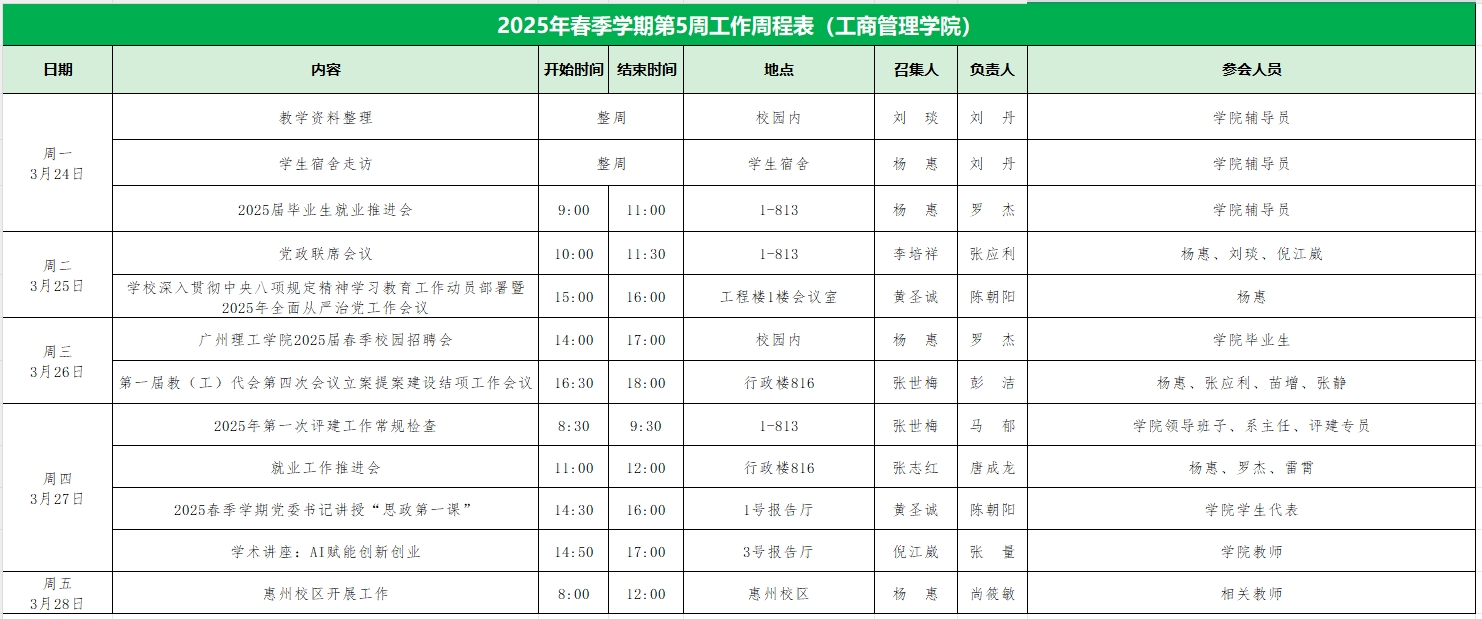 威廉希尔williamhill中文2025年春季学期第5周工作周程表