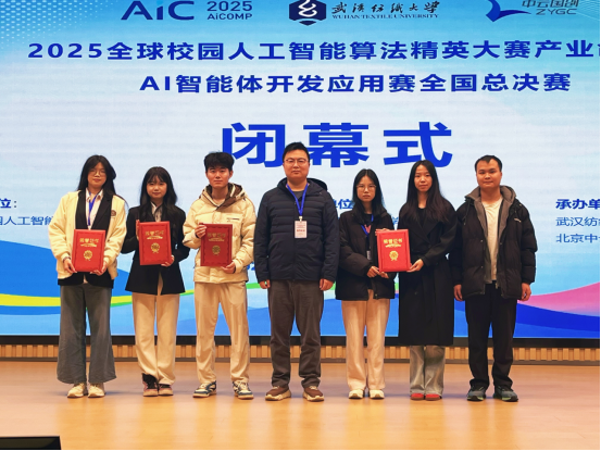 2025全球校园人工智能算法精英大赛由江苏省人工智能学会主办,武汉纺织大学与北京中云国创数据科技有限公司承办。全国总决赛于2025年11月21日至23日在湖北武汉的武汉纺织大学隆重举行,吸引了来自全国高校的研究生、本科及专科组的众多优秀团队同台竞技。威廉希尔williamhill中文由威廉希尔williamhill中文倪江崴、宋旸两位老师带领袁旭、李娜等6名学生组成的参赛团队,在本科组118支队伍的激烈竞争中脱颖而出,最终斩获佳绩。